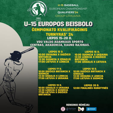 Europinis beisbolas atvyksta į Kauną. Liepos 15–20 dienomis stebėkite U-15 Europos beisbolo čempionato kvalifikacinio turnyro susitikimus, vyksiančius VDU Prezidento Valdo Adamkaus sporto centre, ir palaikykite mūsų šalies rinktinę.