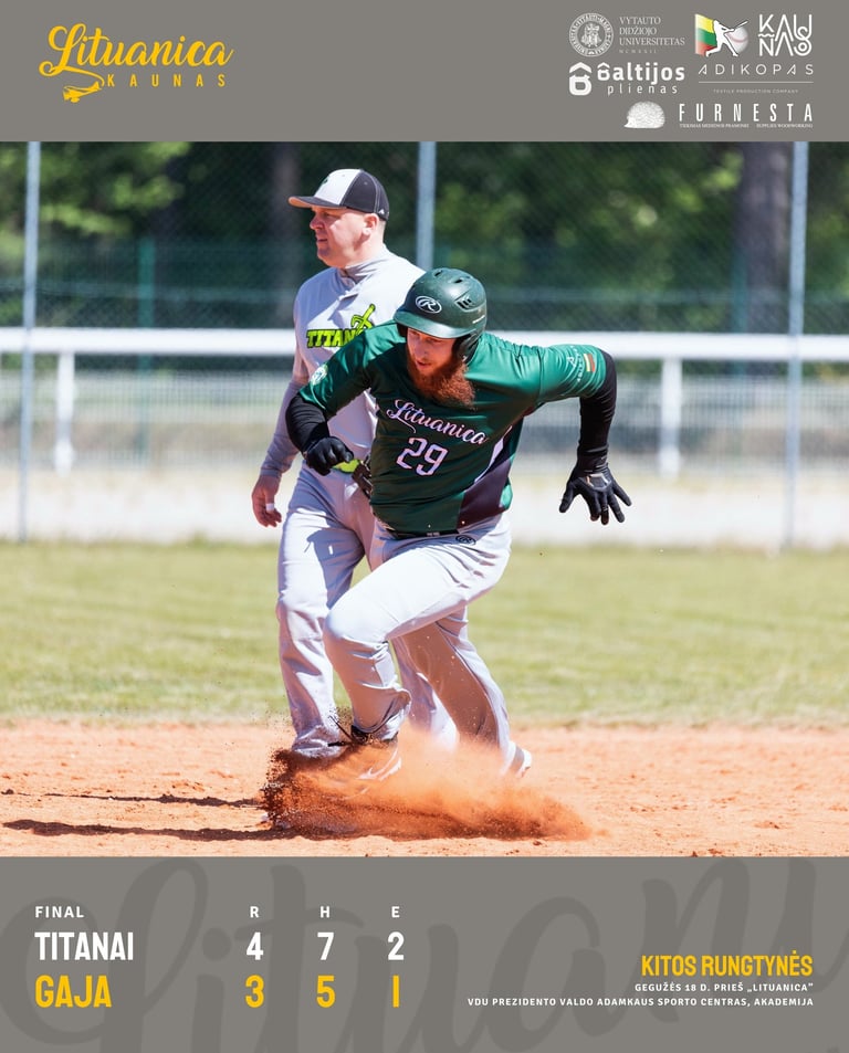 Puolime išsiskyrė du hitus pirmajame susitikime atmušęs Martynas Račkauskas. Kitas rungtynes SM „Gaja” žais gegužės 18 d. prieš Kauno „Lituanicos” beisbolininkus.
