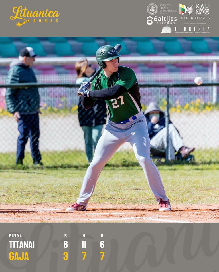 Antrosiose rungtynėse metiko pozicijoje „Titanus” tvirtai prilaikė Justinas Račkauskas – per 6.2 inningo kaunietis leido atmušti 7 hitus ir pelnyti 4 taškus, bet atliko 5 strikeout'us ir tik 1 BB.