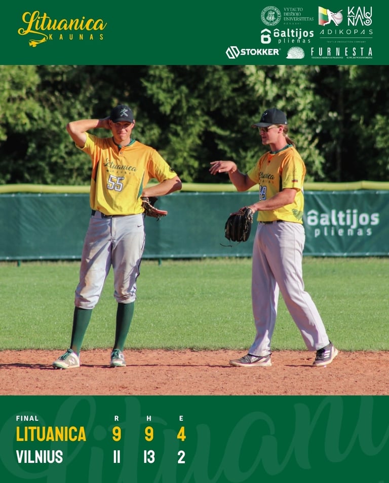 Po netrumpos rinktinių pertraukos į Lietuvos beisbolo čempionatą sugrįžusi „Lituanica“ (12–2) šeštadienį Kaune pasidalijo po pergalę su praėjusių metų čempionais – BK „Vilniaus“ (13–3) beisbolininkais.