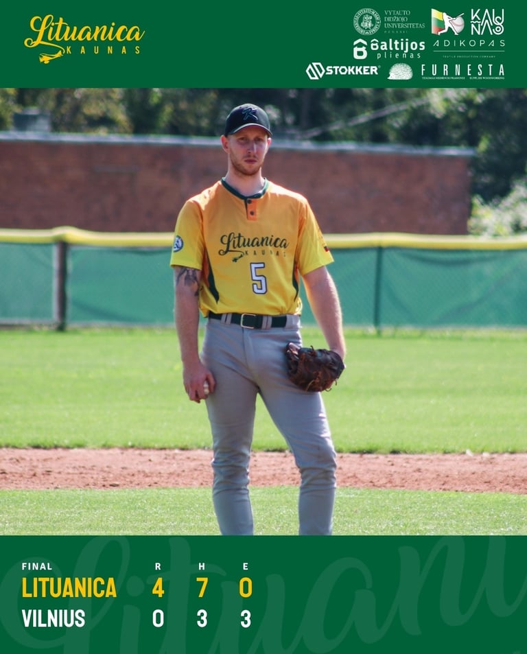 J. Račkauskas per 7 kėlinukus atliko net 9 strikeoutus, leido atmušti tik 3 hitus, o vilniečiams toliausiai pavyko pasiekti tik antrąją bazę. Kaunietis šiame sezone iki šiol apskritai fiksuoja 1.35 ERA rodiklį ir taip lyderiauja Lietuvos beisbolo čempionate.