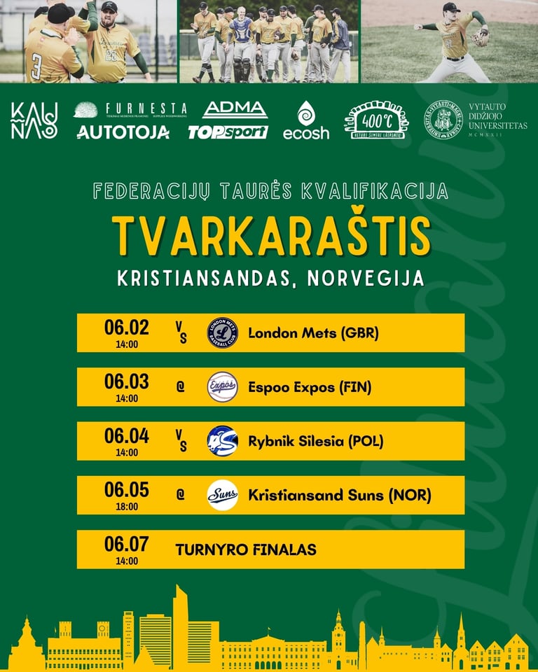 Kauno beisbolo klubas „Lituanica” birželio 2-7 dienomis Norvegijos mieste Kristiansande dalyvaus Federacijų taurės kvalifikaciniame turnyre, kuriame Lietuvos čempionai susitiks su Didžiosios Britanijos, Suomijos, Lenkijos ir Norvegijos klubais.