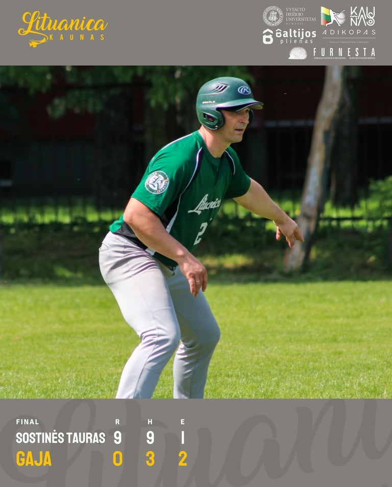 Kauno SM „Gaja“ (2–8) sekmadienį Vilniuje patyrė du pralaimėjimus rezultatais 0:9 ir 0:10 prieš VBA – SM „Sostinės tauro“ (4–6) ekipą, taip nepatekdama tarp keturių stipriausių Lietuvos beisbolo čempionato komandų ir užbaigdama savo sezoną.