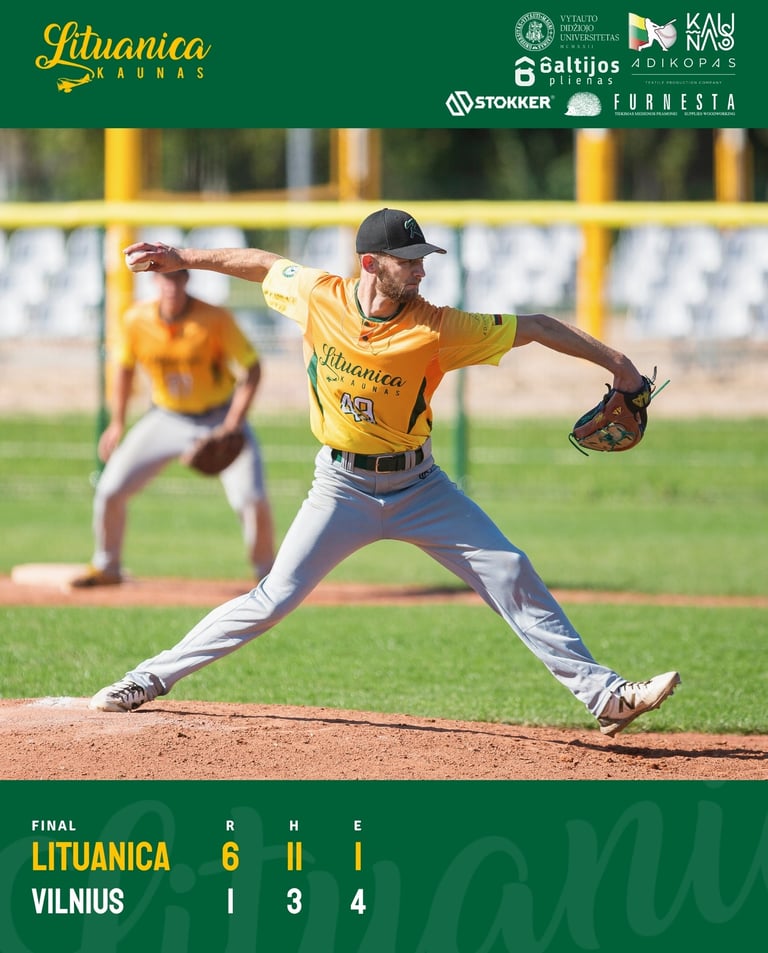 Praėjusį savaitgalį Lietuvos beisbolo čempionate prasidėjo finalo serija iki trijų pergalių, kurioje Kauno „Lituanica“ pelnė dvi pergales (6:1, 9:0) ir šiuo metu pirmauja rezultatu 2–0.