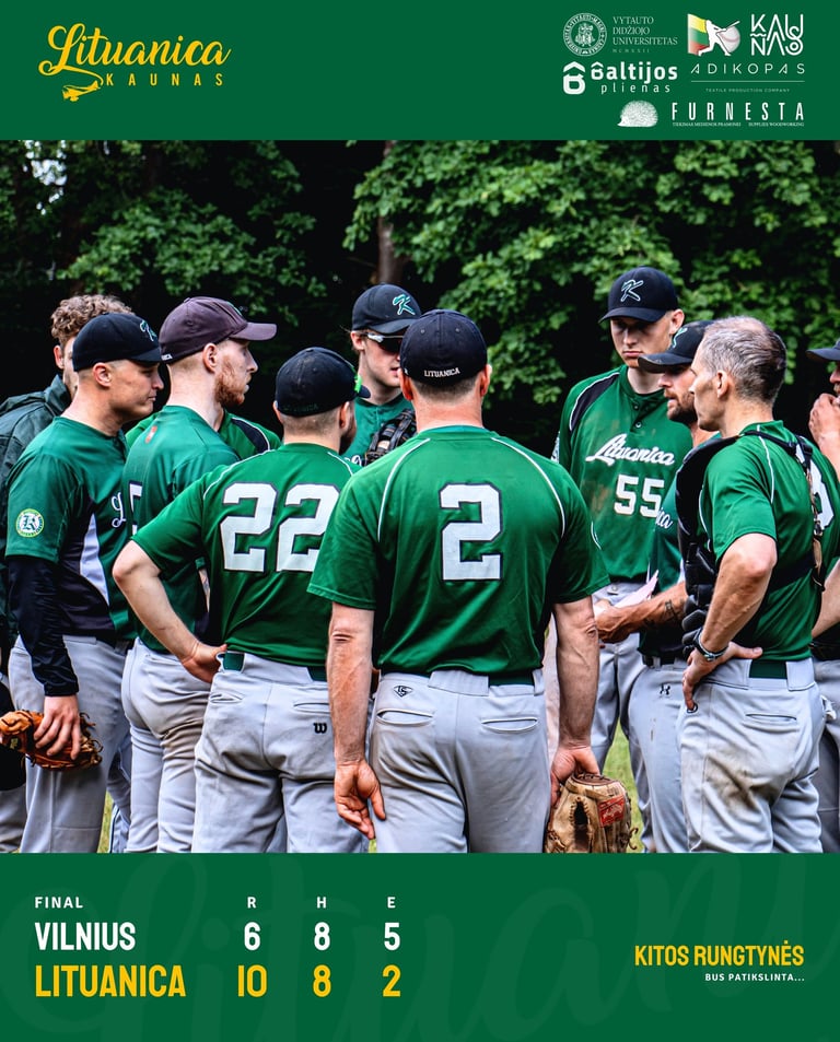 Tolimesnis komandos tvarkaraštis Lietuvos beisbolo čempionate paaiškės sugrįžus po Konfederacijų taurės B diviziono kvalifikacinio turnyro, birželio 11–15 dienomis vyksiančio Švedijos sostinėje Stokholme. Antrajame nacionalinių pirmenybių rate ir atkrintamosiose varžysis keturios stipriausios šalies beisbolo komandos.